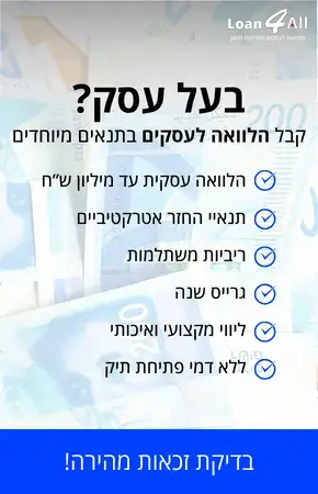 - הלוואה לעמותות: עמותות הפועלות בישראל העוסקות בחינוך, בריאות ורווחה.